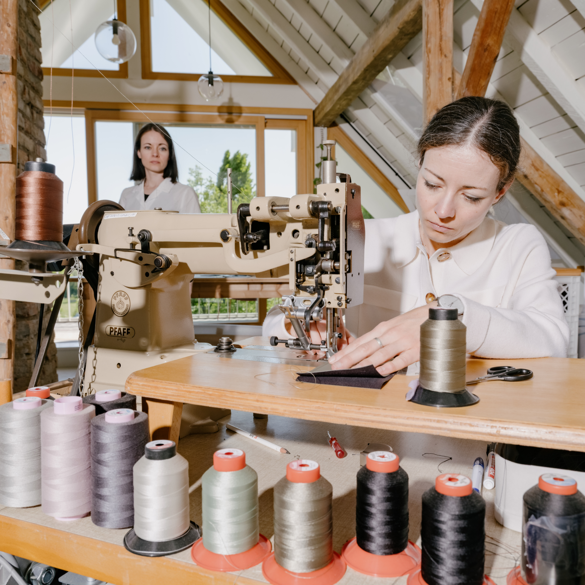 burggrafburggraf entwirft puristische Taschen und Accessoires aus pflanzenbasierten Materialien. Seit 2017 loten die Produktdesignerinnen und Zwillingsschwestern Elena und Nicola Burggraf mit ihrer Kollektion die Potenziale zukunftsfähiger Lederalternativen aus. Im Mittelpunkt steht dabei immer der Anspruch, zeitlos schöne Dinge zu schaffen, die gleichzeitig die Umwelt so wenig wie möglich belasten. So stehen Produkte von burggrafburggraf für eine Ästhetik, die klare und raffiniert konstruierte Silhouetten in den Vordergrund stellt und auf alles Überflüssige verzichtet. Die gesamte Kollektion wird von den Designerinnen in ihren beiden Ateliers im Nordschwarzwald und in Hessen handgefertigt. Ihre Entwürfe wurden bereits mehrfach ausgezeichnet (German Design Award Gold 2024, German Design Award Gold 2020, Staatspreis Gestaltung Kunst Handwerk 2020, dezeen Awards 2020 longlisted).